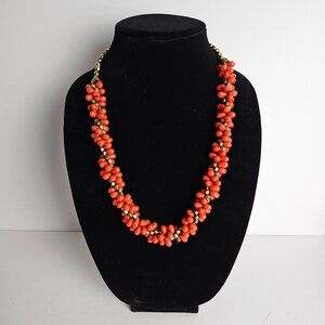 Vtg Red Necklaced Glass or Natural Stone Bead Cluster Necklace Mid-Century Retro
