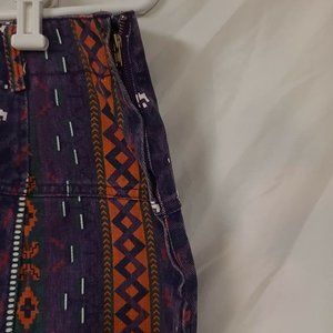 Vtg Red Rover Womens W28 x L19 Multicolor Rodeo Aztec Pattern Zipper Side Denim Short Knee Length Skirt