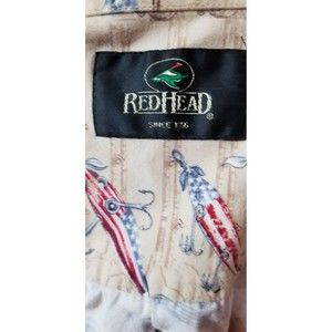 Vtg Redhead Men's Button-Up Short Sleeve Shirt Sz XL Fish Tackle Red White Blue
