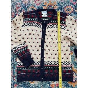 Vtg Redwood & Ross 100% Wool Shetland Heart Fair Isle Cardigan Sweater Sz L