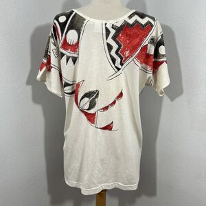 This vintage Reebok T-shirt is a rare find from the 1990s, featuring a multi-color graphic design on the chest. Made of cotton, this casual L/XL size women's top is perfect for sportswear or beach outings. With a chest size of 44 inches and a shoulder to shoulder measurement of 32 inches, this original Reebok blouse has a relaxed fit and a shoulder to hem length of 27 inches. This nostalgic piece of athletic wear is a stylish addition to any vintage clothing collection.