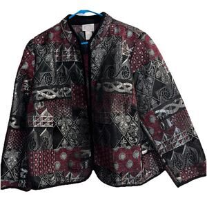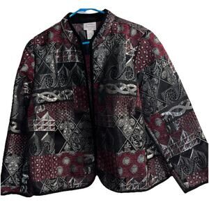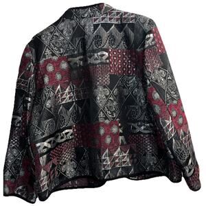 Vtg Renaissance Tapestry Patchwork Jacket Size 2XP Black Maroon Silver Open