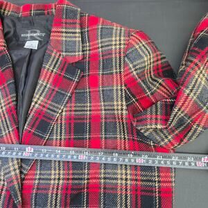 Vtg Requirements Wool Blazer Jacket Womens 14 Holiday Christmas Red Black Grey Plaid Academia Preppy Office Party