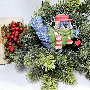 This charming vintage bluebird ornament is beautifully crafted in resin, featuring a delicate heart in its hand and intricate hand-carved details. Its vibrant blue tones make it a standout piece for your Christmas tree, perfect for adding a whimsical, handmade touch to your holiday decor.