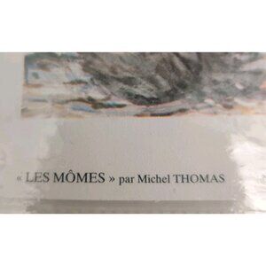 Embrace the charm of the 80s with these authentic French Mid Century Big Eyed Paris Boy Boy Art Print by Michel Thomas. Signed. 13.25x7"