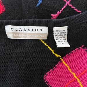 Vtg Retro 90s black cardigan with colorful plaid pattern - Marisa Christina