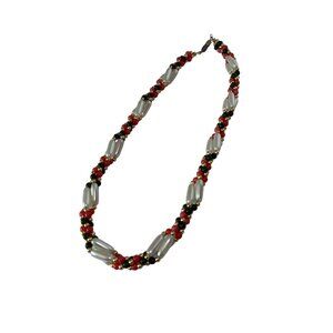 Vtg Retro Handmade Twisted Orange Black Gold Faux Pearl 17" Necklace