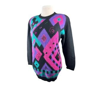 Vtg Retro I.B. Diffusion Artsy Embellished Jeweled Geometric Sweater Size Small