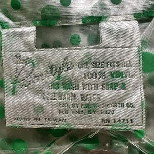 Vtg Retro Raincape & Kerchief Vinyl Clear Green Polka Dots Woolworth’s Primstyle