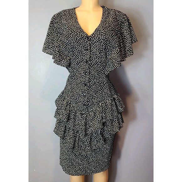 Vtg Retro Rockabilly Pinup Polka Dot Feminine Dress Sz 14 90s 80s Ruffle Goth