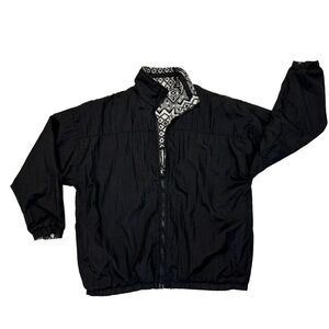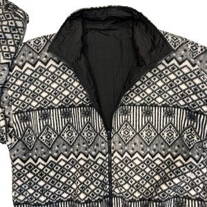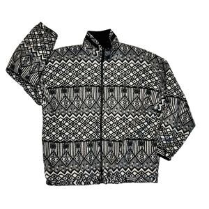 Vtg Reversible Fleece Nylon Jacket Women M Black White Aztec Pattern Fall Winter