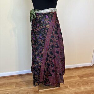 Vtg Reversible Womens Wrap Skirt Bohemian Paisley Floral Design Green Purple