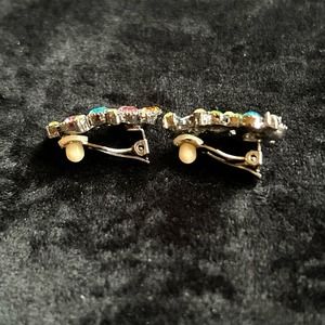 Vtg Rhinestone Clip On Earrings Aurora Borealis paisley shaped