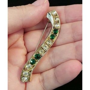 get this gorgeous, vintage brooch, silver tone, with clear stones, depicting a ribbon. measures 2.25" long by 0.8" wide, statement piece. All VS Collections Boutique