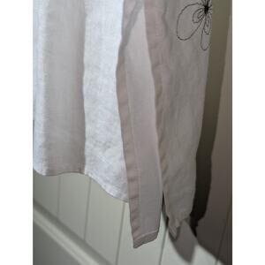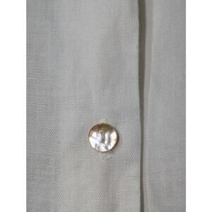 Vtg Richard Malcolm Irish Linen Ecru Embroidered Flowers Button Front Shirt Sz M. Pre-owned, this shirt is in excellent vintage condition. Gorgeous. Side slits. Shell buttons. Measurement photos are of armpit to armpit. Length is 28".
