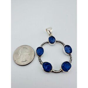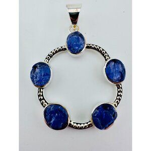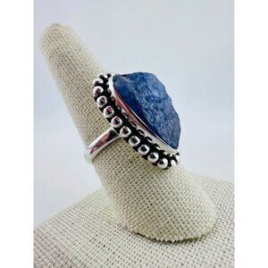 This vintage Ring & Pendant set features raw Iolite stones, tastefully set in Sterling Silver. The unique and stylish asymmetrical ring is size 7.75. The blue and silver color combination adds to its charm.