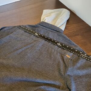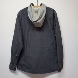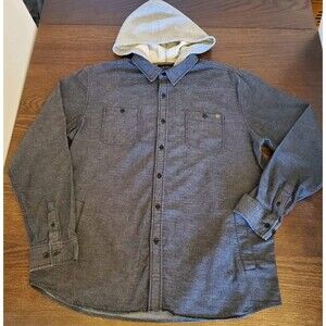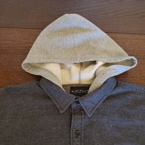 Vtg Rip Curl Youth Shirt w/Hoodie L Gray Button Down Skater Jacket Slant Pockets