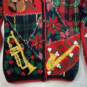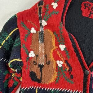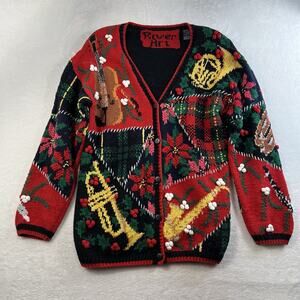 Vtg River Art S Small Cardigan Sweater Novelty Print Music Teacher Instruments