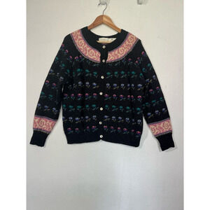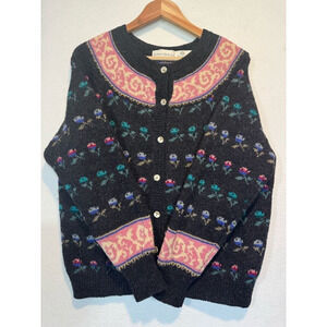 Vtg Robert Scott Ltd 100% Wool Cardigan Sweater Floral Women Button Up