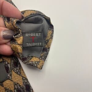 Vtg Robert Talbott Finest Silk Hand Printed in Italy Men's Tie Brown Geometric