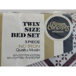 Vtg Room Concepts Cotton Blend Muslin Fitted Flat Twin Size Sheets Pillow Case