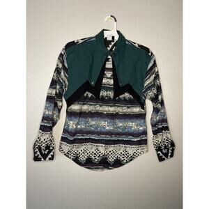 Vtg Rough Rider Circle T Western Aztec Women's M Button Up Shirt USA 90s Y2K