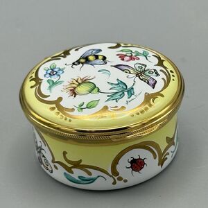 Features: signed, hinged, hand painted, butterflies, ladybug, bee, flowers, gold gilt