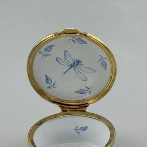 Vtg Round Porcelain Hinged Trinket Box Signed Butterflies Ladybug Flowers Gilt