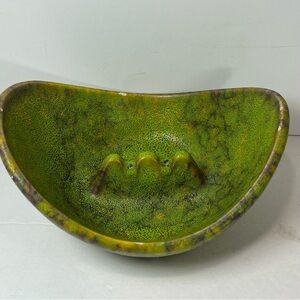 Vtg Royal Haegar Lemon Peel Lava Glaze MCM Green Ashtray Retro Rare 5.5”x4.5”