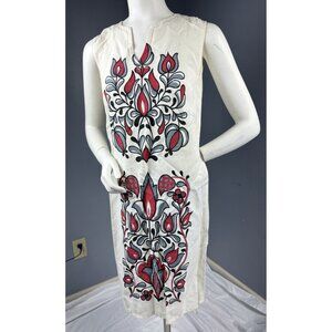 Vtg Royal Miss Fashion Rayon Floral Shift Dress Cream Red Gray Pullover Sz 13-14