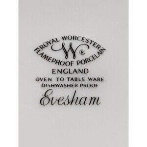 capacity of 28 oz. The Evesham Gold pattern showcases a fruit theme and is