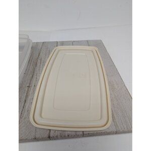 Vtg. Rubbermaid Servin' Saver Rectangle 4 cups #5 Almond Lid B