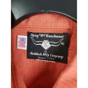 Vtg Ruddock Flying R Ranchwear Shirt Mens L Orange Check Pearl Snap Button USA
