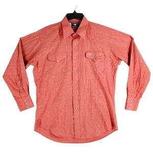 This vintage Ruddock Flying R Ranchwear shirt is a must-have for any stylish man. The orange micro check pattern is eye-catching and perfect for any casual occasion. The button-up design and long sleeves make it versatile and suitable for any season.