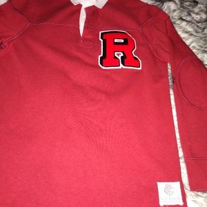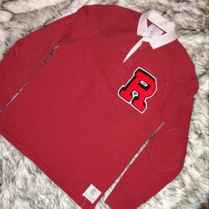 Ralph Lauren Rugby with chenille R patch & elbow pads with naturally distressed features, a crown with RFC on the back.