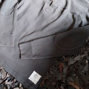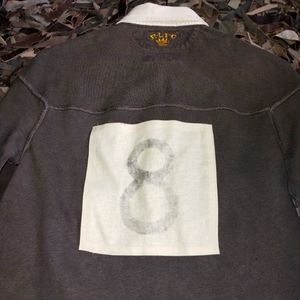 Brown Rugby polo distressed design with faded 8 patch on the back with the rlfc crown logo.