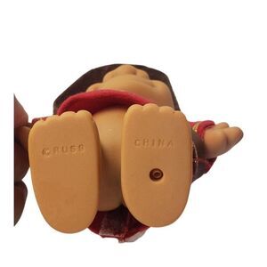 This vintage Russ troll doll, adorned in a Mountie outfit with a brown hat and vibrant red hair, is a nostalgic collectible from the 1990s. A charming artifact blending whimsy and history, it reflects a playful era of craftsmanship and character design.