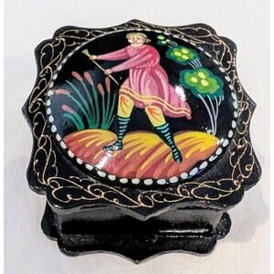 Fairy Tale Russian Vintage Trinket Jewelry Ring Vanity Lacquer Enamel Folk Art Wood