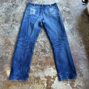 Vtg Rustler Denim Jeans Mens 37x33 Faded Distressed Blue Wash Sanforized Raw