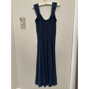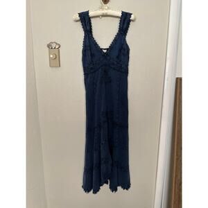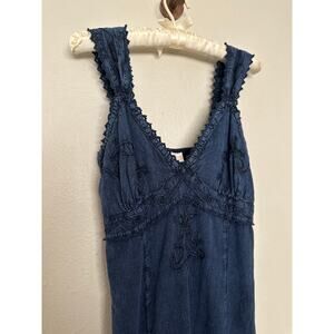 Vtg Blue S Denim Fairycore Vneck Embroidered Fairycore Midi Dress Renaissance Festival