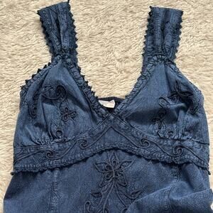 Vtg S Denim Fairycore Embroidered Fairycore Midi Dress Renaissance Festival