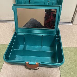 Vtg SASSABY Makeup Case Travel Organizer Model 108 Hard Case GREEN Blue Gold