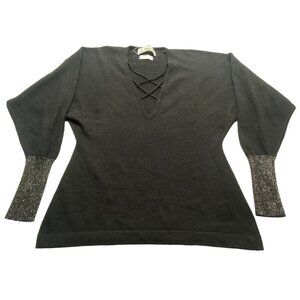 Vtg SCOTCH HOUSE Women Pullover Cashmere Sweater Long Sleeve Sz M Black 79-20