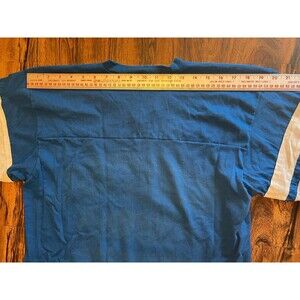 This is a super cool vintage Seattle Seahawks football jersey shaped shirt. There is extensive color transfer on the sleeves. This fits like a vintage shirt much smaller than current sizes. See pics for details and measurements.