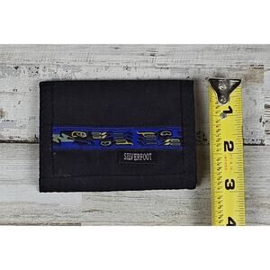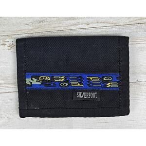 Vtg SILVERFOOT Minimalist Black Nylon Bifold Wallet Blue Raven Pattern Canada