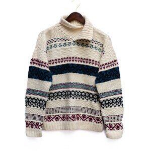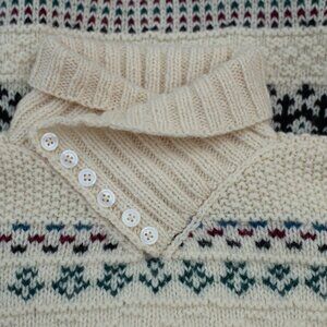 Vtg SKYR 100% Shetland Wool Sweater Women’s S Nordic Chunky Shawl Neck Pullover