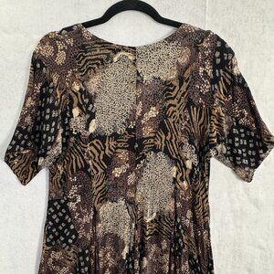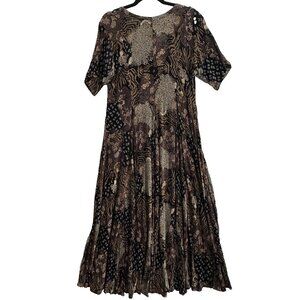 Vtg STARINA Women 90s Maxi Dress Sz M Brown Cottagecore Flowy Short Sleeve 75-19