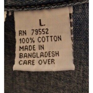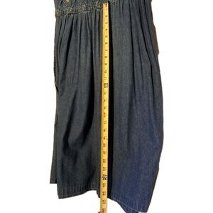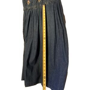 Vtg STYLE Denim Dress Sz L Sleeveless Floral Embroidered Flared Waist Tie 79552