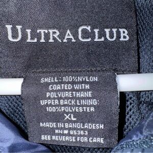 Embrace the nostalgia of the '90s with the Ultra Club vintage SUNY Oswego Storm Chasers rain jacket. A true gem for collectors and enthusiasts alike, this navy blue jacket comes in a men's XL, catering to a regular fit preference. Crafted from a durable nylon blend, this raincoat ensures both comfort and longevity.