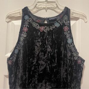 Vtg Sacred Threads Maxi Dress Women’s M/L Velvet Crochet Floral Whimsigoth Moody